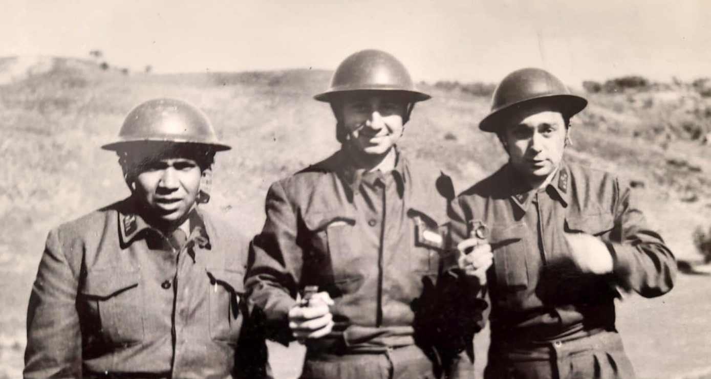 Dr. Tuncay Özverim askerde arkadaşlarıyla. Tuncay Özverim ortada. (Bu fotoğrafı Dr. Osman Kun arşivinden aldım. Çok teşekkür ederim. KY)